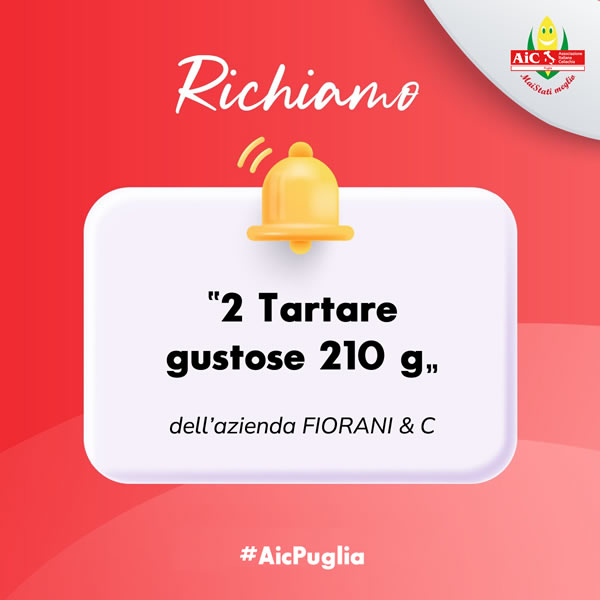 Vi informiamo che sono state attivate le procedure di richiamo dal mercato del prodotto “2 Tartare gustose 210 g” dell’azienda FIORANI & C.