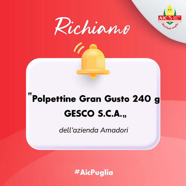 Vi informiamo che sono state attivate le procedure di richiamo dal mercato del prodotto “AMADORI – Polpettine Gran Gusto 240 g”.