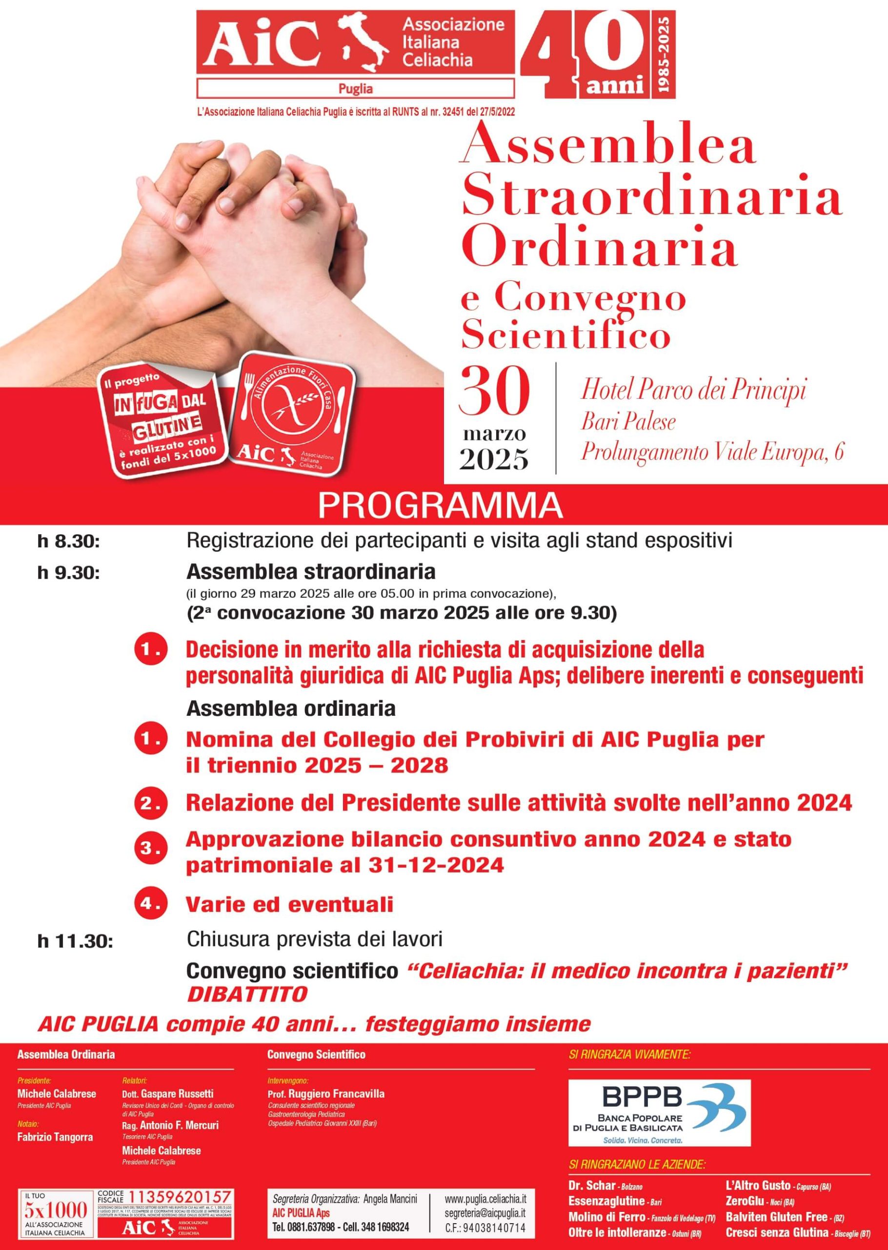 Domenica 30 marzo, alle ore 8.30, a Bari, presso Hotel Parco dei Principi, è in programma l’incontro con gli iscritti di Aic Puglia. Nell’occasione, festeggeremo i 40 anni della costituzione della nostra Associazione.