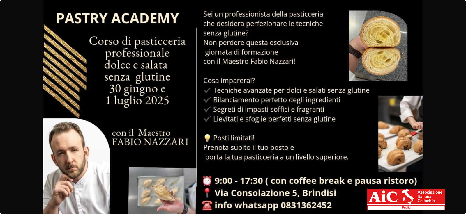 Brindisi – Corso di pasticceria professionale dolce e salata senza glutine