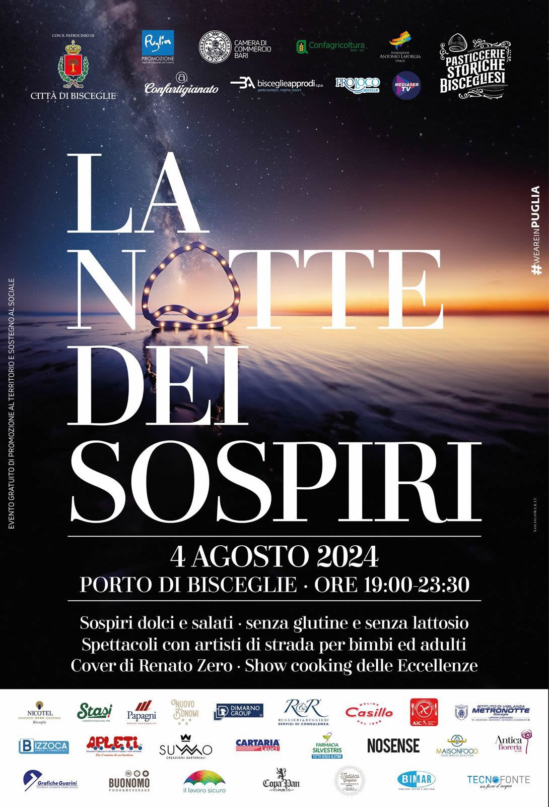 A Bisceglie (Bt) il 4 agosto 2024, dalle ore 19:00, presso il Porto, è in programma ‘La notte dei Sospiri’.