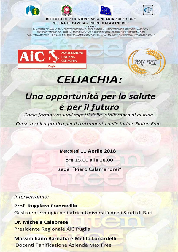 Bari – 11 aprile – Istituto Alberghiero ” Calamandrei”- Corso formativo sulla Celiachia