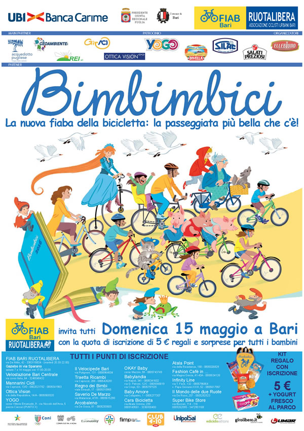 Domenica 15 maggio  AIC Puglia con i suoi volontari sarà presente alla manifestazione Bimbimbici , un’allegra pedalata attraverso le vie di Bari.