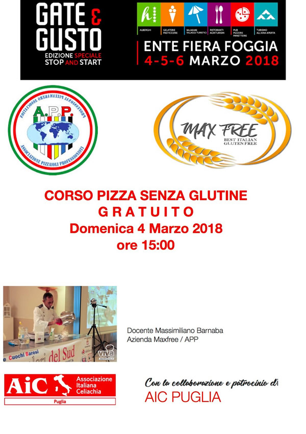 Se vuoi vedere i segreti degli impasti senza glutine e imparare le tecniche per una buona pizza preparata in casa, partecipa al corso gratuito che si terrà domenica 4 marzo alle ore 15,00, nell’ambito della Fiera GATE & GUSTO a Foggia.