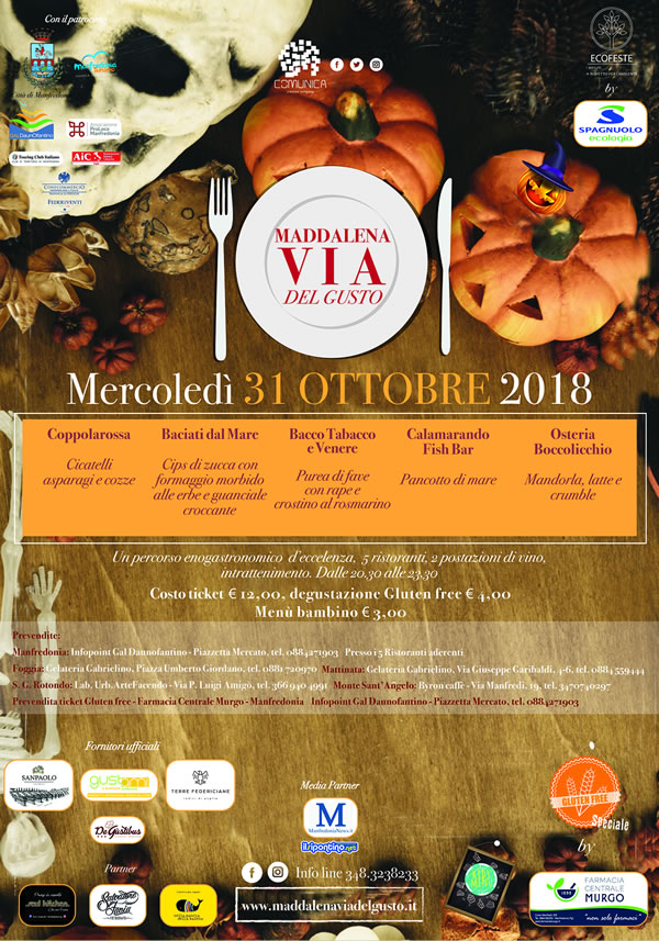 A Manfredonia (FG), il prossimo 31 ottobre 2018, a partire dalle ore 20:30, spiriti, streghette e zucche faranno il paio con i sapori ed il divertimento di Maddalena Via del Gusto – Speciale Hallowen.