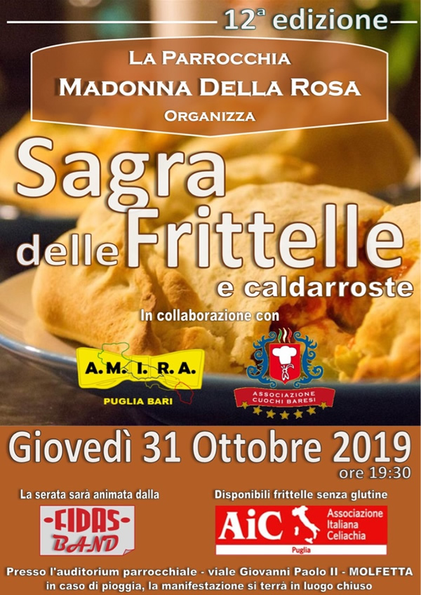 Alla manifestazione sarà presente uno Stand per degustazione di frittelle senza glutine.