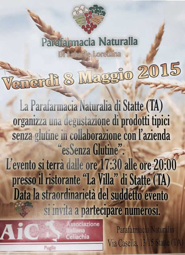 La Parafarmacia “Naturalia” di Statte (TA) organizza una degustazione di prodotti tipici senza glutine in collaborazione con l’azienda “esSenza Glutine“.