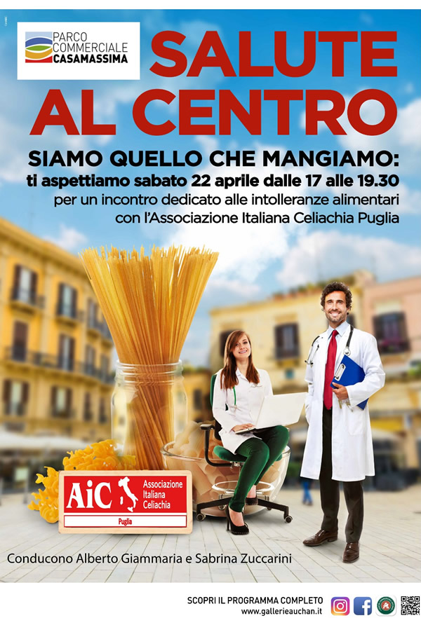 Siamo quello che mangiamo: ti aspettiamo sabato 22 aprile dalle 17 alle 19,30 per un incontro dedicato alle intolleranze alimentari con esperti di AIC Puglia