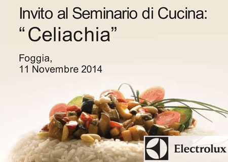 L’agenzia Electrolux Professional SICURO MICHELE, è lieta di invitarVi al seminario di cucina gratuito dedicato alla CELIACHIA che si terrà giorno 11 novembre 2014 dalle ore 15:00 alle ore 18:00, presso: