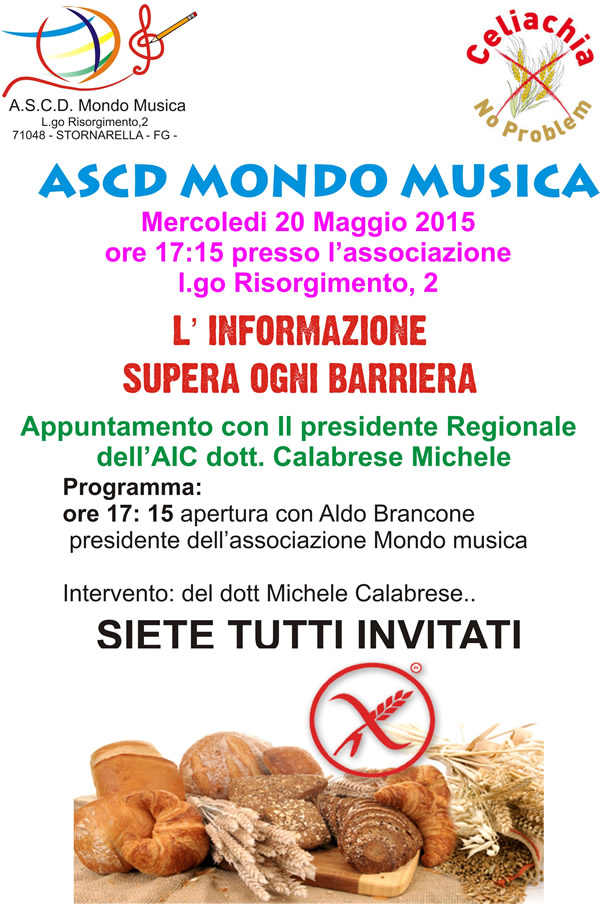 Mercoledì 20 Maggio 2015 ore 17:15 a Stornarella (FG) presso l’associazione A.S.C.D. MONDO MUSICA l.go Risorgimento, 2