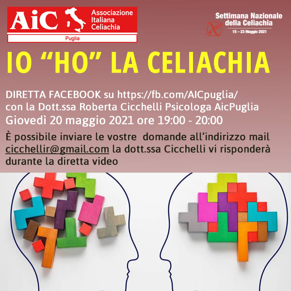 Settimana Nazionale della celiachia, diretta Facebook con la dott.ssa Roberta Cicchelli Psicologa Aic Puglia