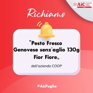 Vi informiamo che l’azienda COOP ha attivato le procedure di richiamo dal mercato del prodotto “Pesto Fresco Genovese senz’aglio 130 g – Fior Fiore”. Il lotto oggetto